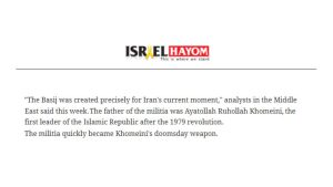 تحلیلگران خاورمیانه این هفته گفتهاند که «بسیج» دقیقاً برای وضعیت امروز ایران ایجاد شده است. آیتالله روحالله خمینی به عنوان پدر بسیج این گروه شبهنظامی را پس از انقلاب ۱۹۷۹ تأسیس کرد که به «سلاح آخرالزمانی» او تبدیل گشته است.