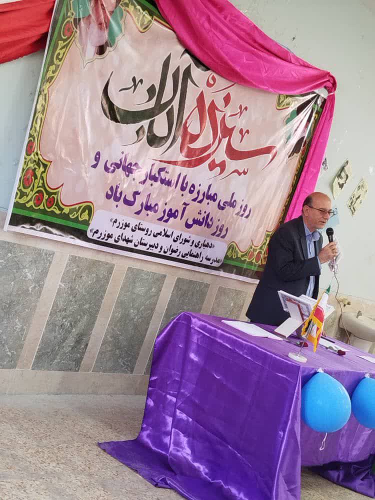 به گزارش خبرنگار مژده خبر به نقل از روابط عمومی بخشداری مرکزی دزپارت حمید رضا اکبری در نشست گرامیداشت مراسم یوم الله ۱۳ آبان ماه در دبیرستان شهدا روستای موزرم با گرامیداشت یاد و خاطره شهدای انقلاب این مناسبت را فرصتی مناسب برای یادآوری ارزشهای انقلاب و تجدید میثاق با آرمانهای آن دانسته و افزود: این مناسبت فرصتی برای تبیین ارزشهای انقلاب و انتقال آن به نسل جوان و نوجوان است که با ماهیت شیطانی آمریکا به عنوان نماد استکبار جهانی آشنا شوند و غیر قابل اعتماد بودن این رژیم در پایبندی به ارزشهای اخلاقی و انسانی تبیین شود.